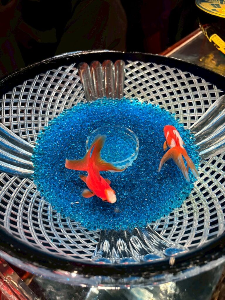 それも、44種類2500匹の金魚が水槽作品の中を優雅に泳いでいるを