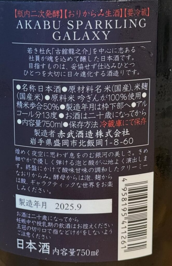 タグ:#日本酒 #赤武 #スパークリング日本酒 #Galaxy #日本酒レビュー