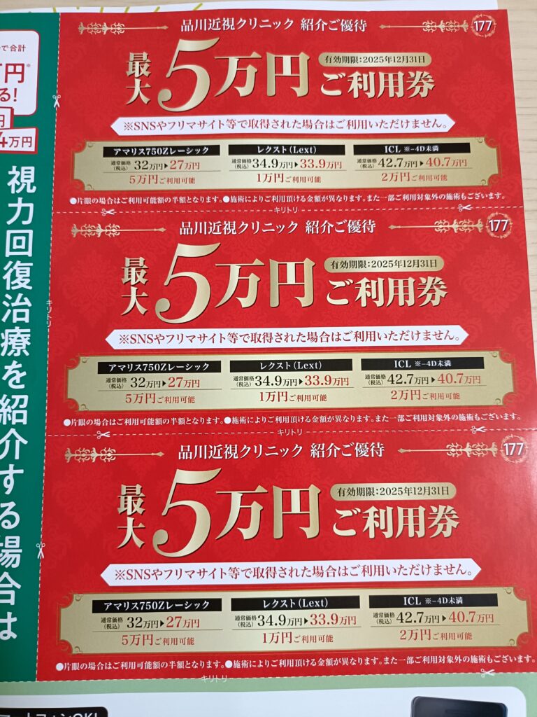実際に、品川近視クリニックでICLの手術を受け、クーポンも使って3万円安くなったいっちゃんが